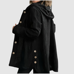 Dámský manšestrový kabát s kapucí a knoflíky