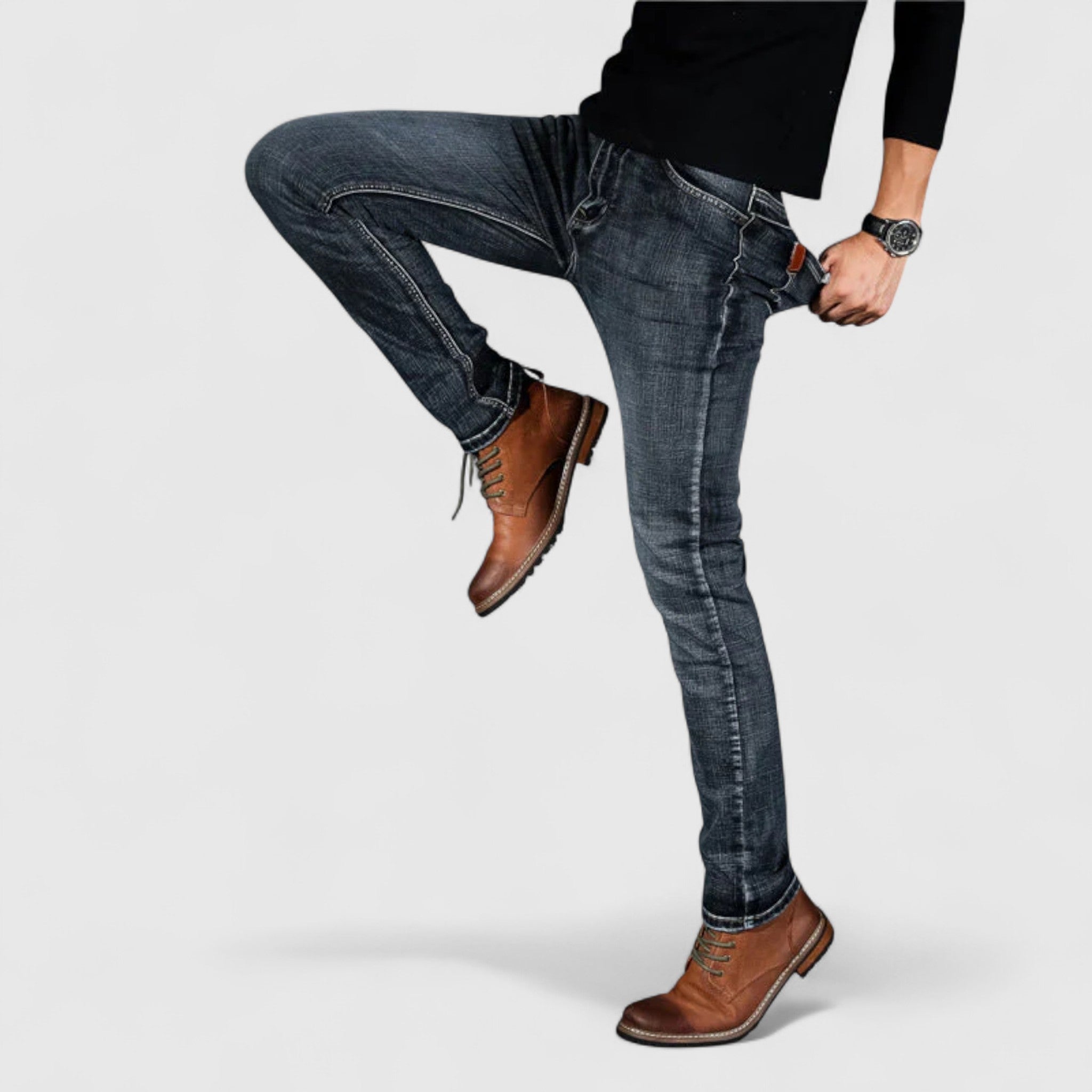 Prémiové elastické džíny byly navrženy pro muže, kteří si cení pohybu a sofistikovanosti. Vyrobeny z vysoce kvalitního elastického denimu, nabízejí flexibilní, ale strukturované přizpůsobení – ideální pro celodenní nošení, na příležitostné procházky nebo pro smart-casual styl.