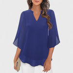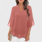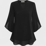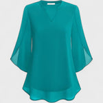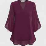 Halenka Petra kombinuje lehký šifon s jemnou strukturou a volnější V-liniový střihem, který krásně padá a opticky tvaruje postavu bez sevření. Decentní výstřih a jemné záhyby na ramenech dodávají kousku šmrnc, zatímco outfit zůstává minimalistický – ideální v kombinaci s džíny, sukní nebo kalhotami pro stylový, ale nenucený vzhled.