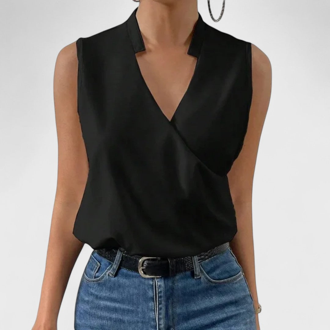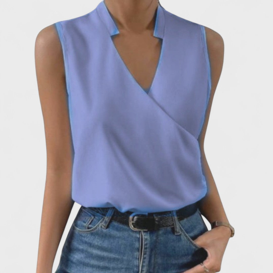 Tento lehký a měkký top s V-výstřihem je ideální volbou pro váš letní šatník. Díky svému uvolněnému a nadčasovému designu se hodí na každodenní nošení. Volný střih a tenký materiál zajišťují maximální komfort a prodyšnost i v těch nejteplejších dnech, zatímco V-výstřih dodává celkovému vzhledu ženský a elegantní nádech.