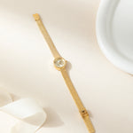 Objevte Cécile® Tyla – ztělesnění prosté elegance. S jejím čistým zlatým designem a decentním kulatým ciferníkem je ideální volbou pro každodenní nošení i slavnostní příležitosti.