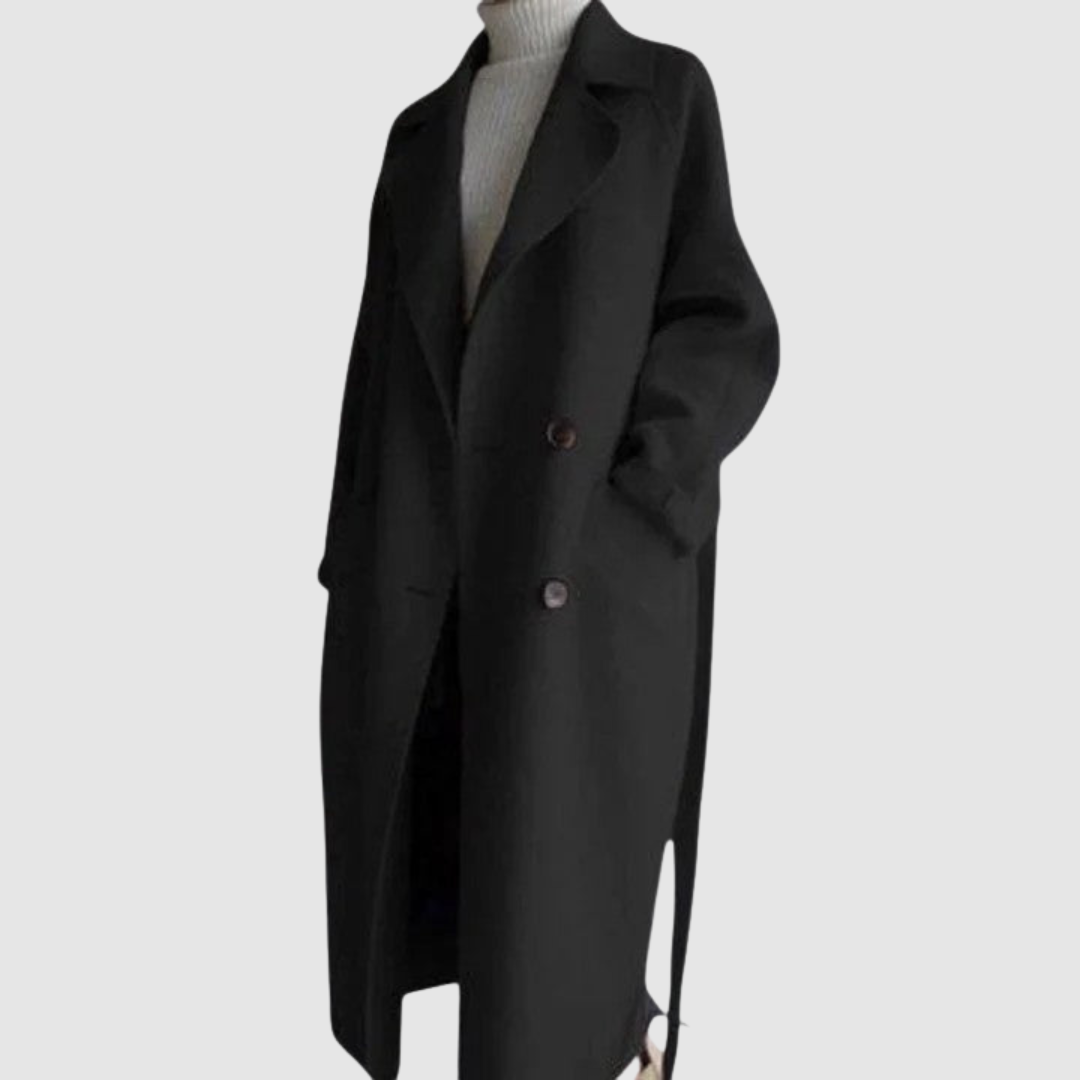 Tento kabát je ideálním kouskem pro ženy, které chtějí spojit nadčasovou eleganci s praktičností. Díky dlouhému střihu poskytuje ochranu před chladem a zároveň dodává outfitu sofistikovaný vzhled. Minimalistický design z něj dělá univerzální volbu pro každodenní i formální příležitosti.