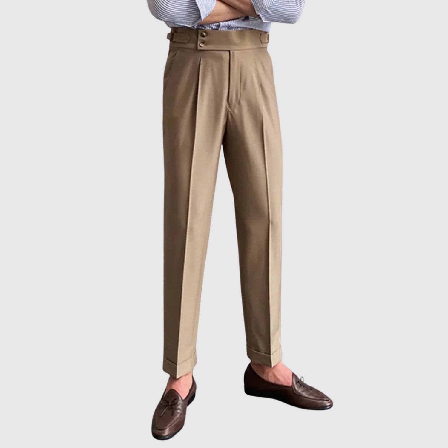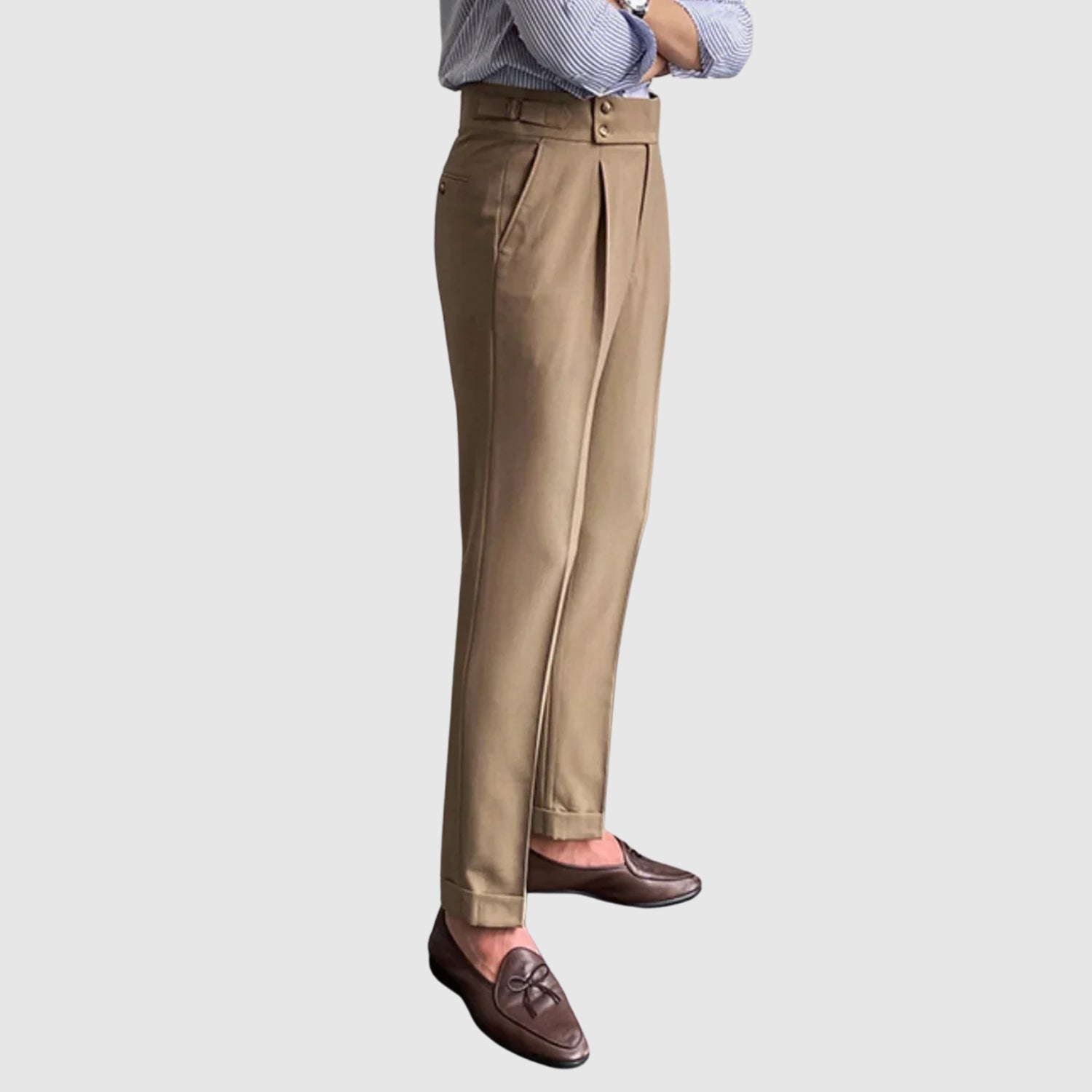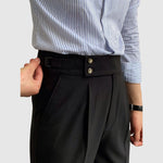 Tyto vintage kalhoty navazují na klasickou eleganci s rafinovaným a moderním stylem. Jejich dokonalý střih zeštíhluje postavu a nabízí pohodlí, aniž by obětoval sofistikovaný vzhled. Jsou ideální pro formální příležitosti, do práce nebo prostě pro chvíle, kdy chcete vyniknout s elegancí a noblesou.