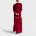 Fallon - Úzké dlouhé šaty s trojrozměrnými volány