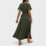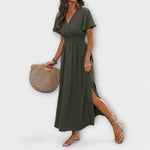 Heather - Elegantní Boho Šaty s Výstřihem do V a Dlouhými Rukávy