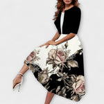 • Elegantní kombinace vzdušných midi šatů a přizpůsobeného blazeru