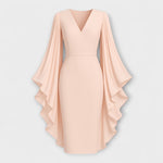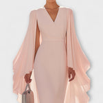 Rachel - Růžové midi šaty s výstřihem do V a chiffonovými rukávy