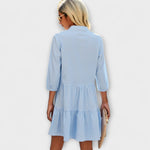 Se jemným modro-bílým kostkovaným vzorem, který vzdává hold vintage stylu, prodyšná tkanina a uvolněný silueta zajišťují, že se budete cítit pohodlně po celý den.