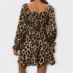 Udělejte dojem s těmito elegantními šaty, které mají výrazný leopardí vzor, kombinující rafinovaný čtvercový výstřih s ženskou sukní ve tvaru A.