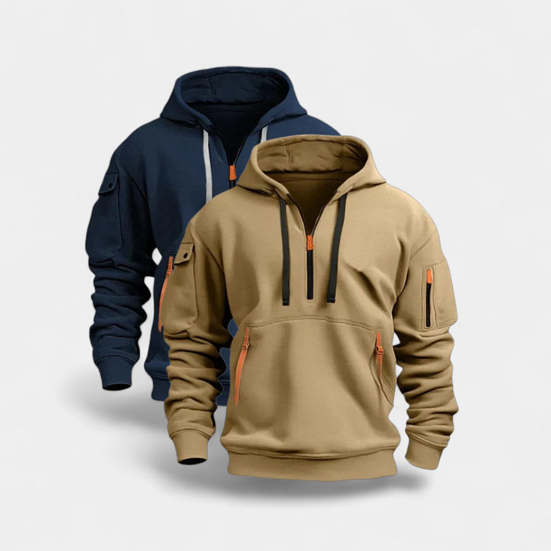 Tento balíček dvou mikin Filip spojuje moderní design s každodenním pohodlím. Díky kontrastním detailům, funkčním kapsám a praktickému zipu vyniká originálním vzhledem, který se hodí pro městský život i volný čas. Dvě univerzální barvy vám umožní snadno kombinovat outfity podle nálady – vždy stylově, vždy pohodlně.