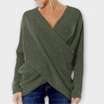 ✔️ Elegantní design s V-výstřihem: Módní křížený V-výstřih a asymetrický lem dodávají tomuto svetru šmrnc.