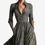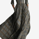 Vize nadčasové elegance, tyto dlouhé šaty vlní s pozoruhodnou grácií a precizností. Jejich strukturovaný korzet zvýrazňuje siluetu, zatímco široká sukně se rozvíjí s klidnou jistotou. Jemný károvaný vzor evokuje sofistikovanost s nádechem klasického šarmu. Navrženy pro přirozenou krásu, zosobňují umění oblékat se s jistotou a hloubkou.