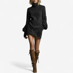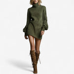 Šaty Tania™ spojují diskrétní eleganci s odvážnou moderností. Vyrobeny z jemného semiše, mají volný střih, vysoký límec a objemové rukávy, které vytvářejí siluetu jak elegantní, tak uvolněnou. Ideální na podzimní večery, spojují pohodlí a sofistikovanost v nadčasovém kousku.