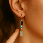 Naše náušnice spojují styl a praktičnost: s rozměry 2 cm x 2 cm jsou ideální velikosti pro elegantní akcenty. Lehké a pohodlné na celý den, vyrobené z vybraných materiálů s rafinovanými detaily, jako jsou sochařské vlny a třpytivé akvamarínové odstíny, které je činí autentickými a plnými kouzla.