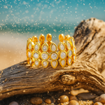 Vyrobeno z pozlacené nerezové oceli, zdobené kapkovými křemeny v designu inspirovaném mořskými květinovými motivy. Hypoalergenní, voděodolné a odolné pro každodenní nošení, nabízí Serel elegantní a lehkou estetiku. Každý detail je ručně vyráběn, aby dodal jedinečný charakter a zářivé světlo.
