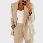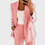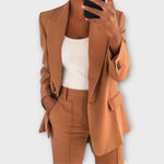 Dvoudílná souprava Christina je ideální volbou pro ženy, které hledají kombinaci elegance, pohodlí a stylu. Její dokonale padnoucí střih se sako a kalhotami vytváří sofistikovanou siluetu, která se hodí do kanceláře, na pracovní schůzky nebo na speciální události. Vyrobená z kvalitního a příjemného materiálu, tato souprava je univerzálním kouskem, který nikdy nevyjde z módy.