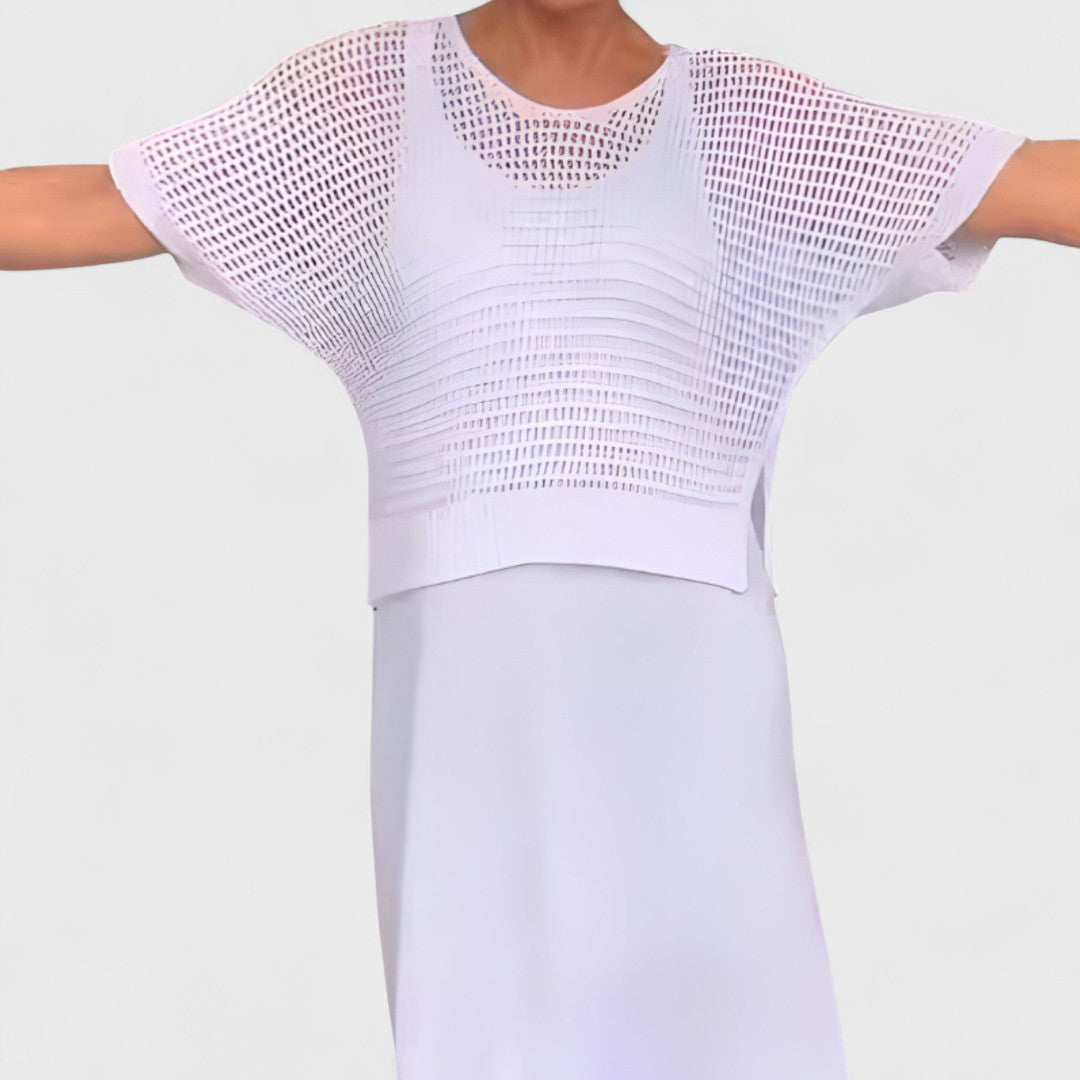 Šaty Claudia kombinují pohodlný pletený horní díl s volně splývavým spodním dílem – lehké a vzdušné řešení na horké dny. Kulatý výstřih a strukturovaný top jemně tvarují postavu, zatímco volná sukně zajišťuje komfortní volnost. Ideální volba pro denní nošení, městské procházky nebo lehké obědové chvíle s přáteli.