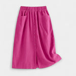 Přirozená textura a nenucený styl v sukni, která kombinuje retro kouzlo s každodenní praktičností. Vysoký pas ženským způsobem obepíná siluetu, zatímco přední kapsy nabízejí pohodlí a funkčnost.