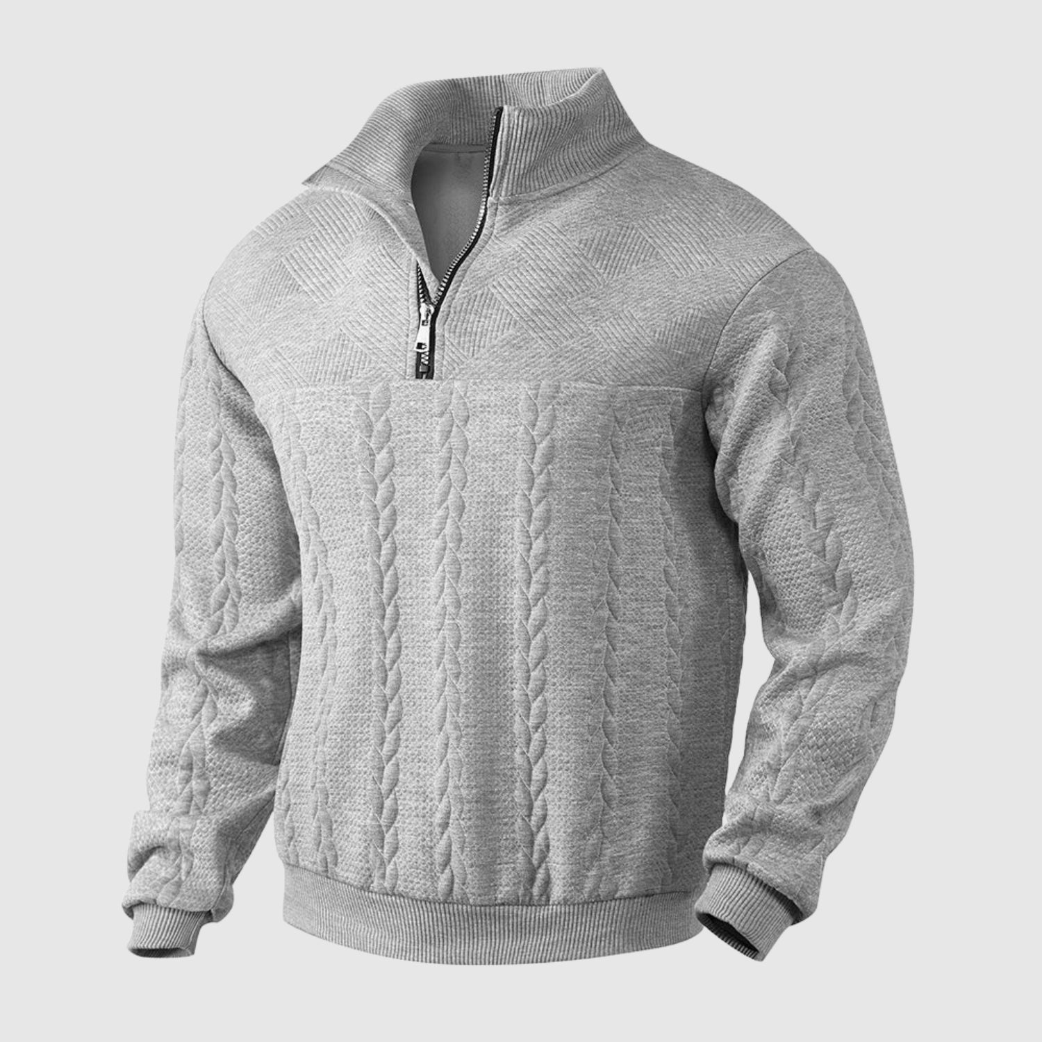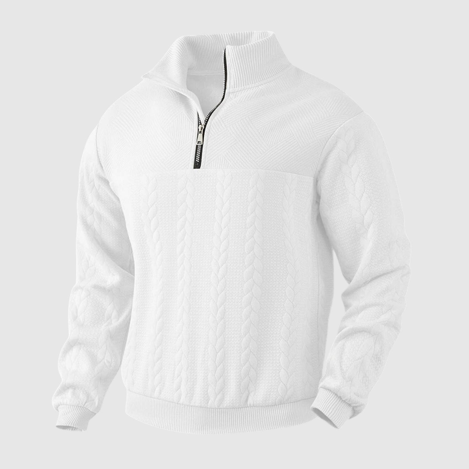 Tento pletený svetr se zipem na čtvrtině délky je dokonalou kombinací sofistikovaného stylu a každodenního pohodlí. Díky měkkému materiálu a strukturovanému designu je tento svetr velmi univerzální: ideální do práce, na každodenní nošení nebo pro elegantnější look v chladném počasí. Jemné detaily, maximální působivost.