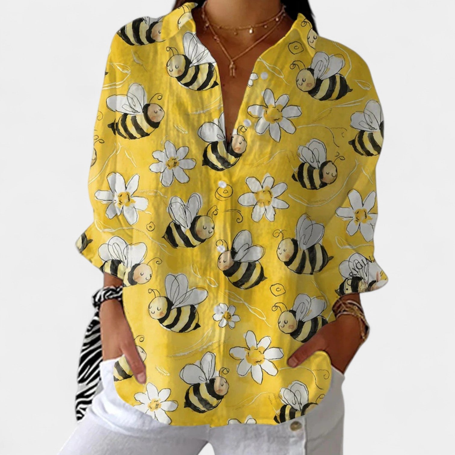 Halenka Kristýna je ideální volbou pro ty, kdo chtějí spojit komfort a styl v jednom. Její volný střih a vzdušný materiál zajišťují příjemné nošení i během nejteplejších dnů, zatímco barevný a hravý potisk dodává outfitu živost a originalitu. Perfektní k šortkám, džínům i sukni.