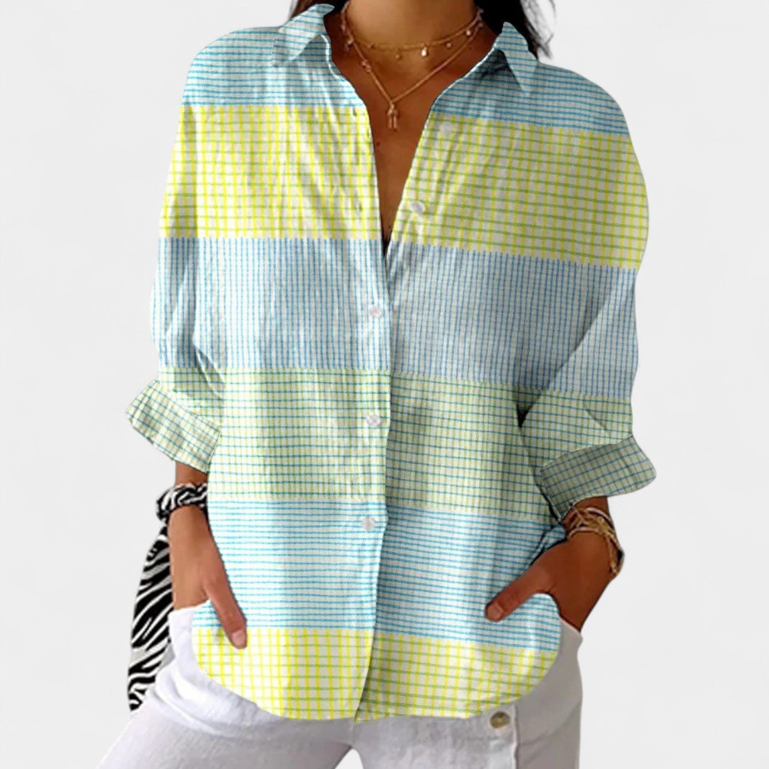 Halenka Kristýna je ideální volbou pro ty, kdo chtějí spojit komfort a styl v jednom. Její volný střih a vzdušný materiál zajišťují příjemné nošení i během nejteplejších dnů, zatímco barevný a hravý potisk dodává outfitu živost a originalitu. Perfektní k šortkám, džínům i sukni.