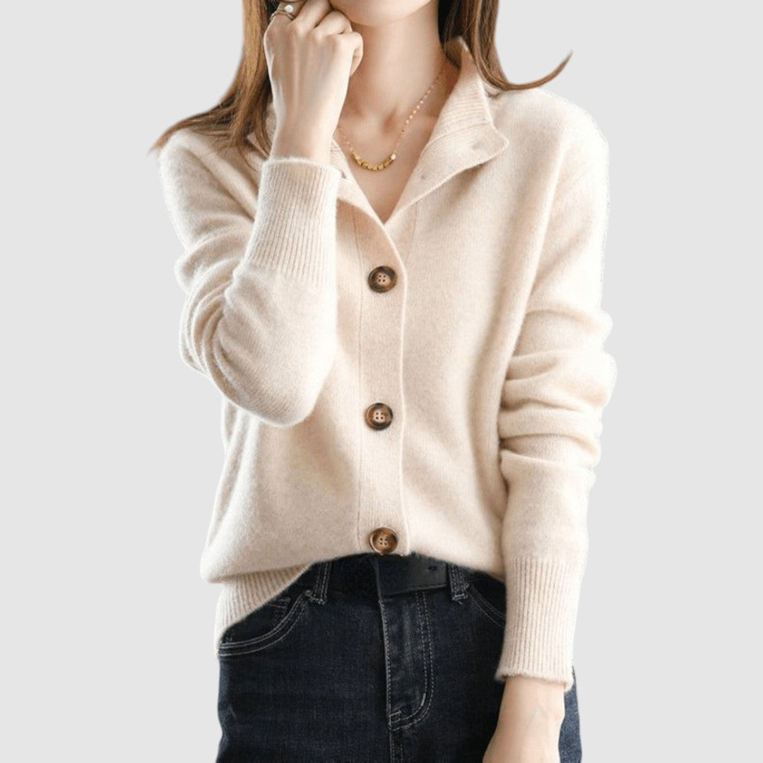 Viktorie je kardigan, který spojuje luxus kašmíru s nadčasovým designem. Jeho jemná pletenina nabízí výjimečný komfort a hřejivost, zatímco klasický střih s knoflíky podtrhuje ženskou eleganci. Ideální pro chladné dny, kdy se chcete cítit útulně a přitom stylově.